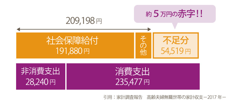 そして月々の支出が26万円程度なので、毎月約5万円不足する計算になります。