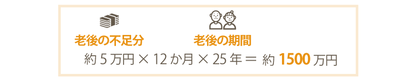 男女の平均寿命から老後の期間が25年と考えると、老後必要になる金額は1500万円ということになります。