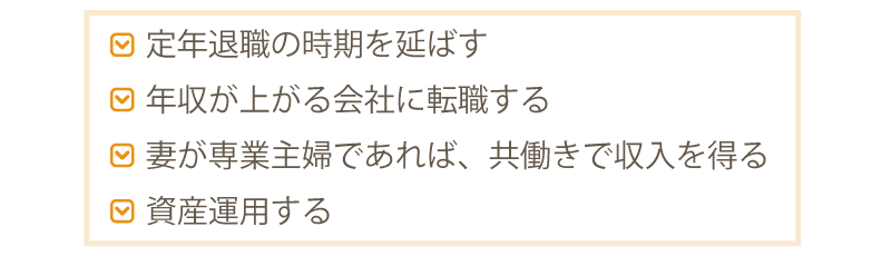 不足している老後資金を捻出するには、「支出を減らすこと」と「収入を増やすこと」の二択です。