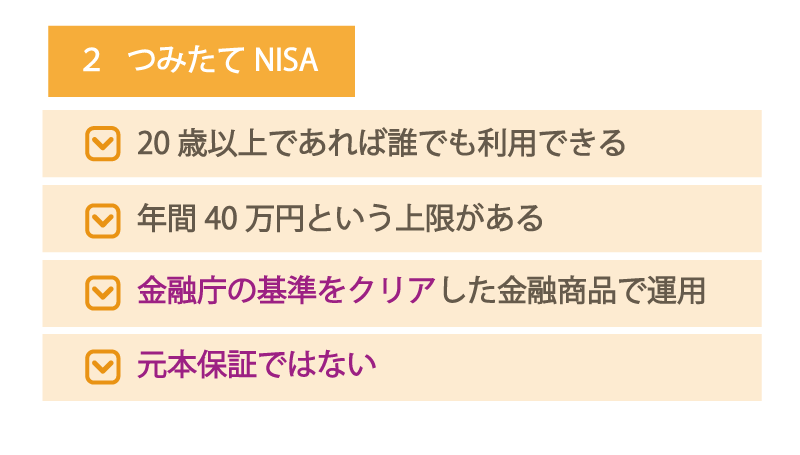 年間の投資金額が40万円という上限が設定されていて、金融庁が決めた基準をクリアした投資信託などの金融商品による資産運用によって利益を得ます。