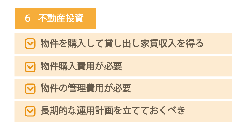 物件を購入して貸し出すことで家賃収入を得る不動産投資も、老後生活のための資金を増やす方法としておすすめです。